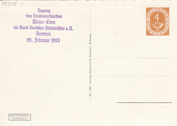 Ganzsache BRD Posthorn Bremen PP2/15 Ganzsache BRD Posthorn Bremen PP2/15 8.00EUR In den Warenkorb
