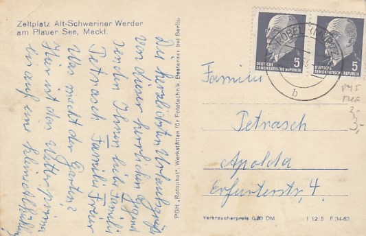 Plau am See Mecklenburg Zeltplatz Alt-Schweriner Werder 1963