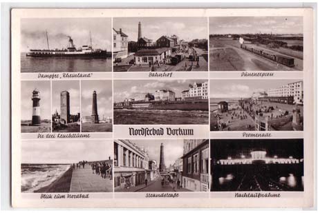 Nordseebad Borkum mit Bahnhof Eisenbahn und Schiff