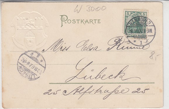 Hannover Theater Wappen Prägekarte 1900