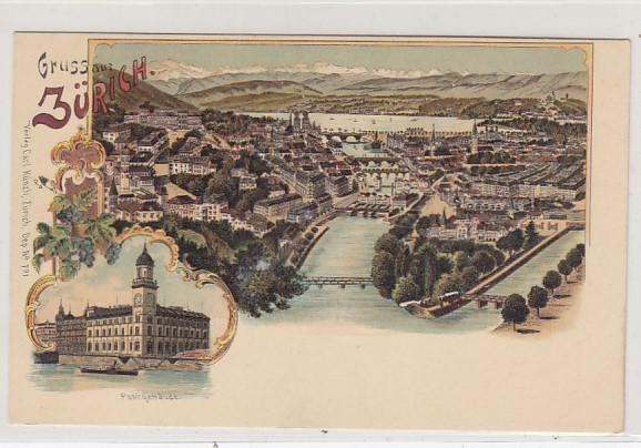Zürich Schweiz Litho Ansichtskarte von ca 1900