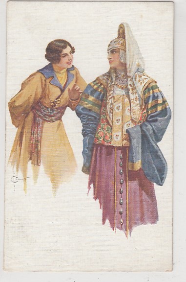 Volkstrachten alte Ansichtskarten Künstlerkarte Solomko Russland