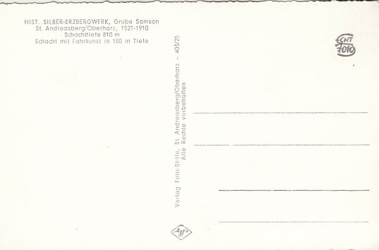 Bergbau Bergwerk St.Andreasberg Oberharz Grube Samson
