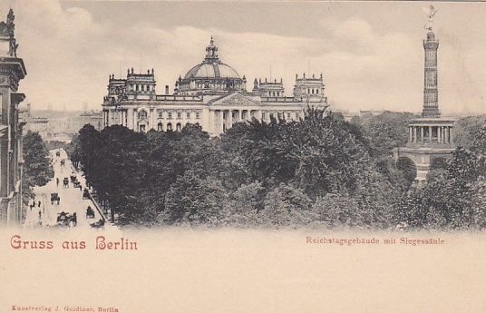 Berlin Tiergarten Siegessäule und Reichstag ca 1900