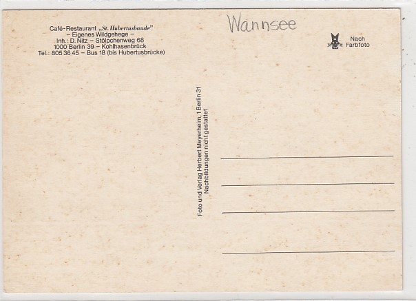 Berlin Wannsee Restaurant St.Hubertusbaude Kohlhasenbrück ca 1970