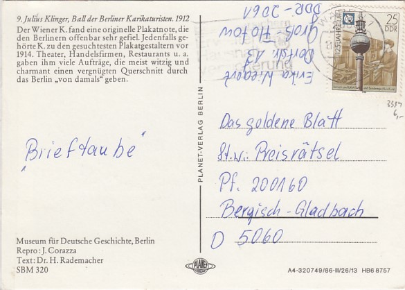 Privatganzsache Postkarte Deutsche Post 6 Pfennig Stadt Berlin