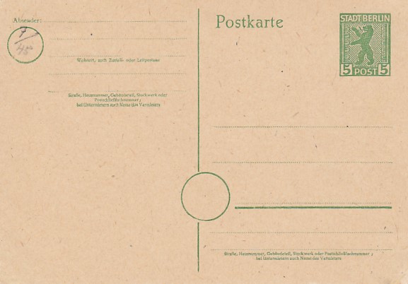 Privatganzsache Postkarte Deutsche Post 5 Pfennig Stadt Berlin