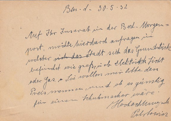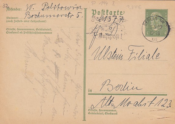 Privatganzsache Postkarte Deutsche Reichspost Berlin 1932