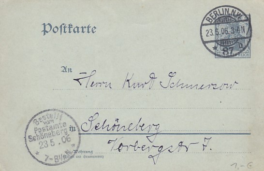 Privatganzsache Postkarte Deutsche Reichspost Berlin Schöneberg 1906