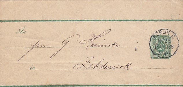 Privatganzsache Deutsches Reichspost Zeitungs Streifband Berlin 1888