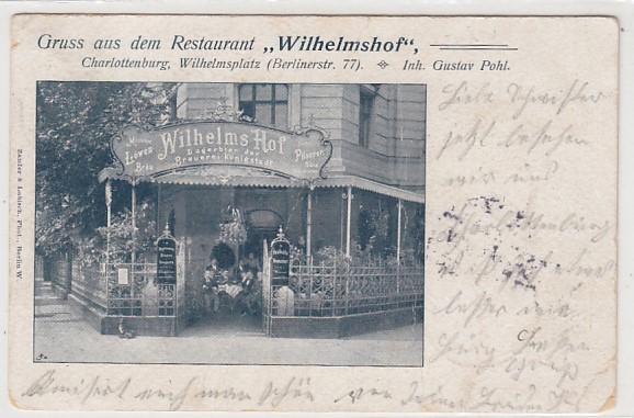 Berlin Charlottenburg Restaurant Wilhelmshof Wilhelmplatz 1903