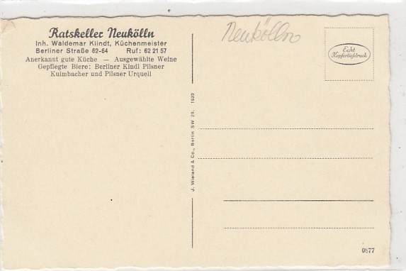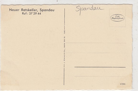 Berlin Spandau Neuer Ratskeller Weinstube ca 1930