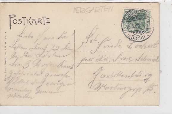 Berlin Tiergarten Kistenmacher´s Garten Hinter den Zelten 1904