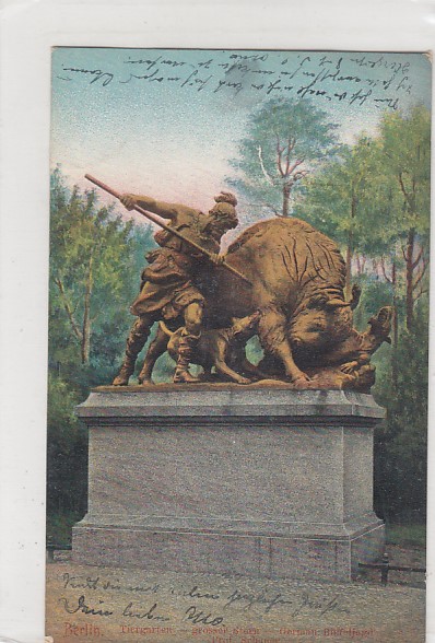Berlin Tiergarten grosser Stern Denkmal Büffeljagd 1905