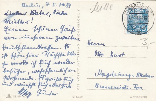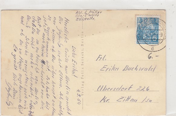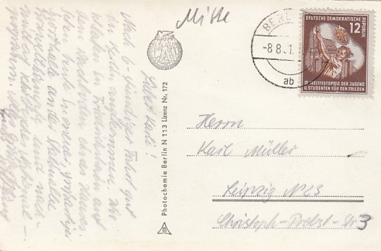 Berlin Mitte Walter Ulbrich Fussball Stadion Briefmarke Weltfestspiele Frankatur 12 Pfennig DDR