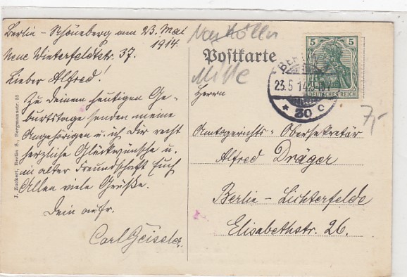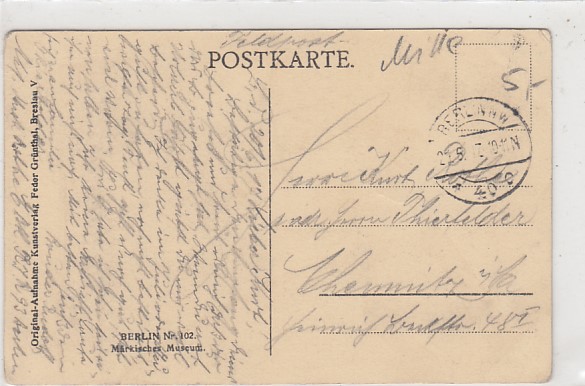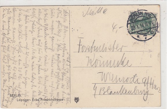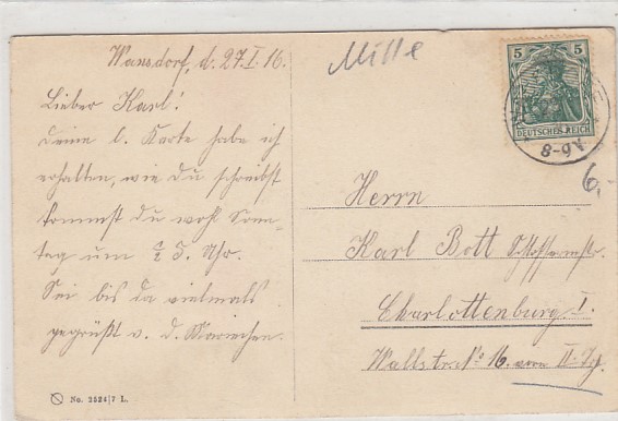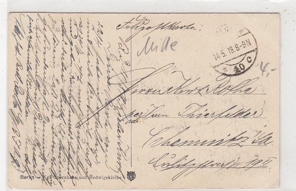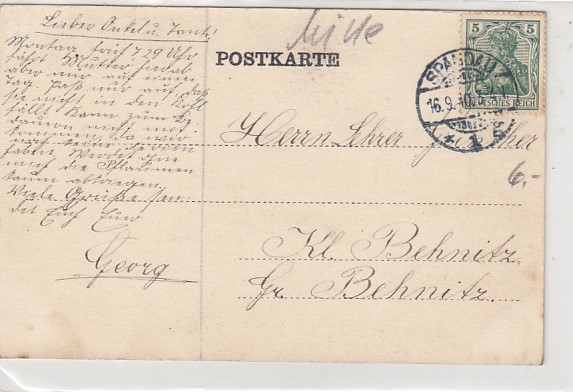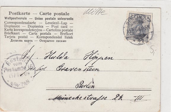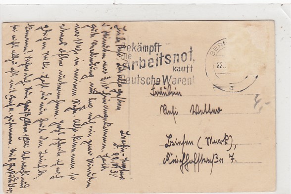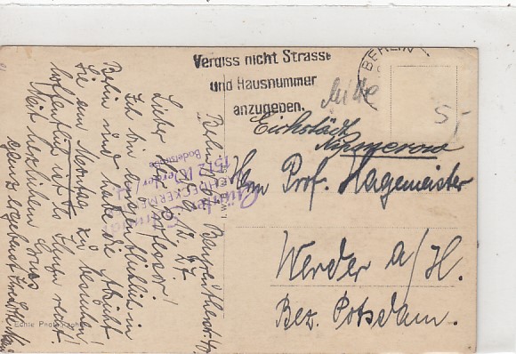 Güsten in Anhalt 1916 Feldpoststempel Berlin Tempelhof