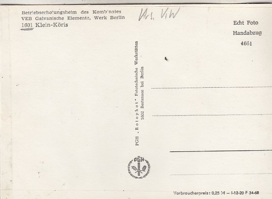 Klein-Köris Ferienheim VEB Galvanische Elemente Berlin 1968