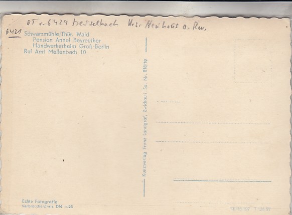 Schwarzmühle Thüringen bei Mellenbach Handwerkerheim Groß-Berlin 1957