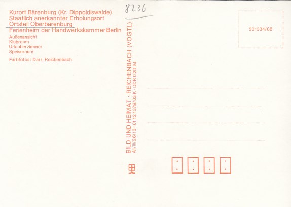 Bärenfels im Erzgebirge OT Oberbärenburg Ferienheim Handwerkskammer Berlin 1988