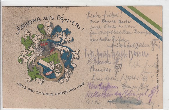 Studenten Studentika mit Wappen Arkona sei´s Panier Berlin Dahlem 1921 Unus Pro Omnibus
