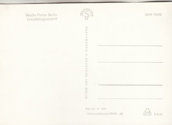 Binnendamfer Motorschiffe Heinrich Mann Weiße Flotte Berlin Gesellschaftssalon 1966