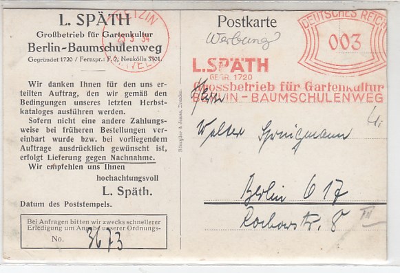 Werbung Reklame L.Späth Gartenkultur Berlin Baumschulenweg Neukölln