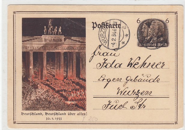 Privatganzsache Stempel Berlin 30 Januar 1938 P267