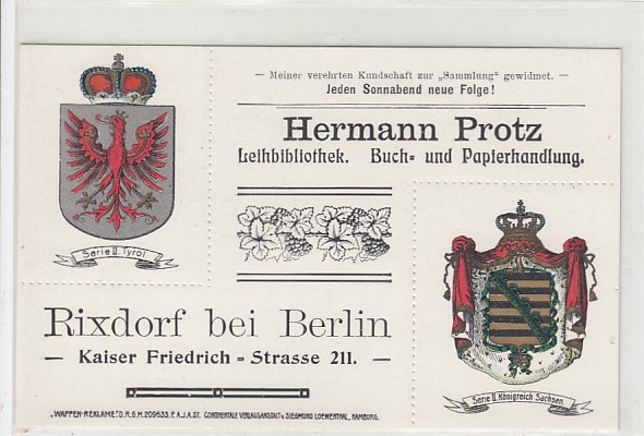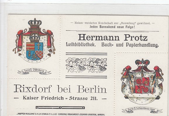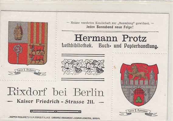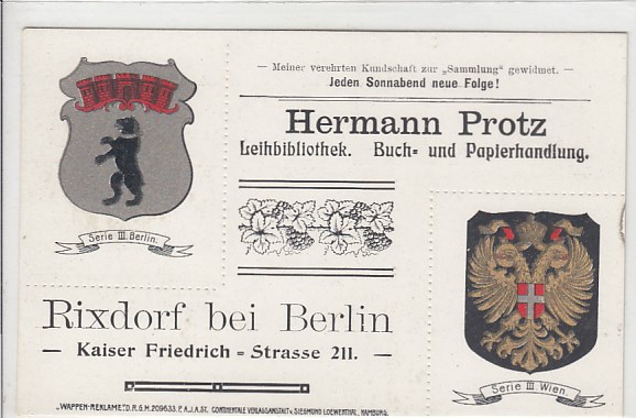Wappen Berlin Rixdorf Buchhandlung Hermann Protz