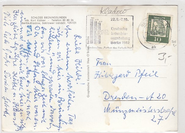 Berlin Spandau Kladow Schloss Brüningslinden 1962