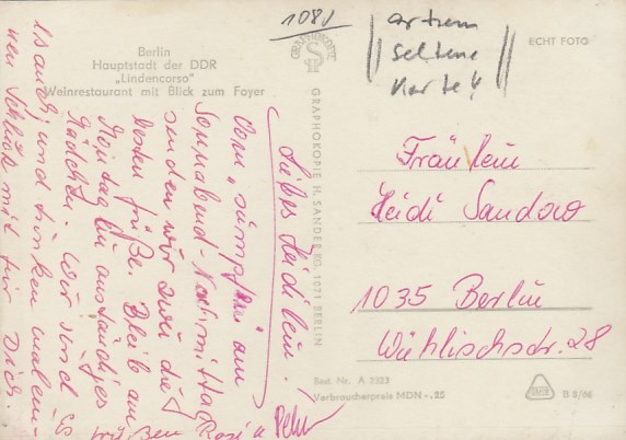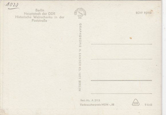 Berlin Mitte Weinrestaurant Lindencorso 1966