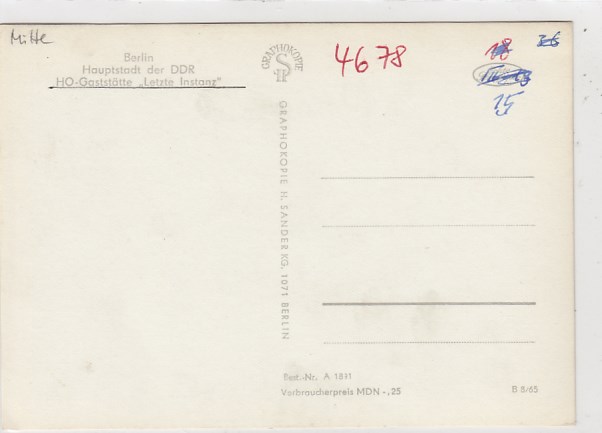 Berlin Mitte Gaststätte Zur letzten Instanz 1972