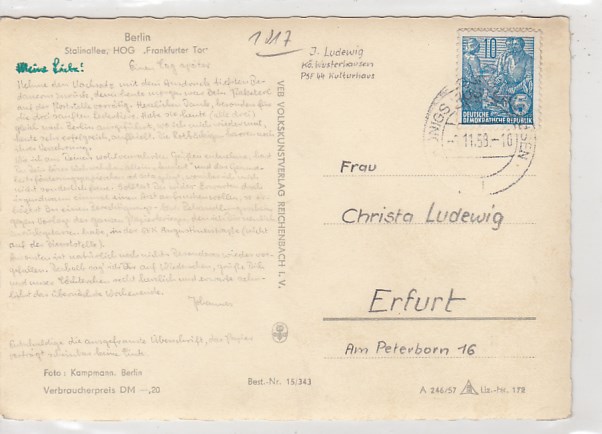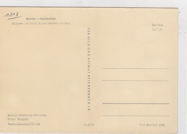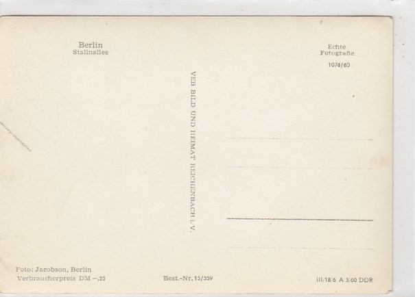 Berlin Friedrichshain Mitte Stalinallee 1960