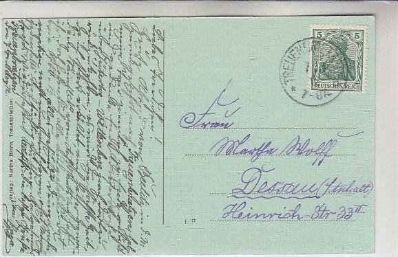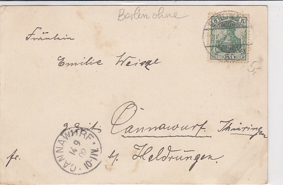 Ensisheim Frankreich Anze Elsass Elsaß Bahnpoststempel Berlin-Kreuz-Thorn 1917