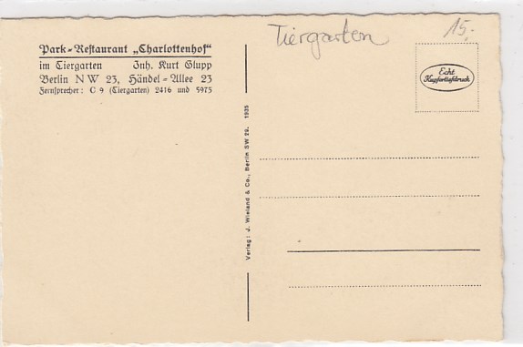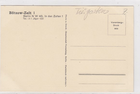 Berlin Tiergarten Schultheiss Foto Karte ca 1930