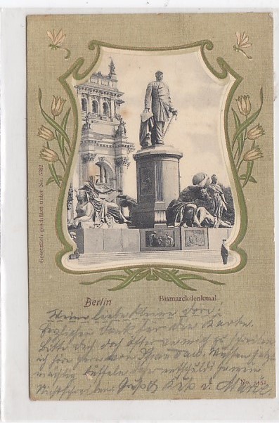 Ansichtskarten mit Stoff Blumen Prägekarte 1902 Bahnpoststempel Berlin-Thorn
