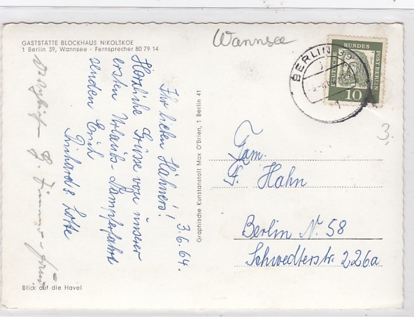 Berlin Wannsee Gaststätte Blockhaus Nikolskoe 1964