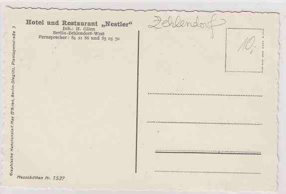 Berlin Zehlendorf Hotel Restaurant Nestler ca 1940