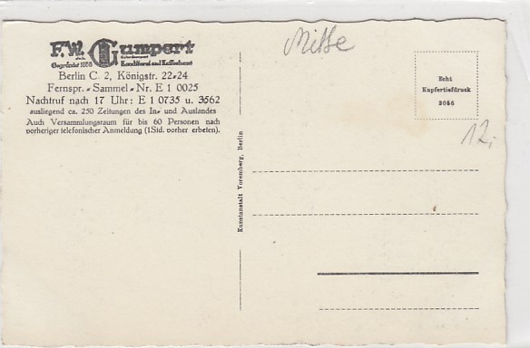 Berlin Mitte Königstraße Restaurant Cumpert ca 1930