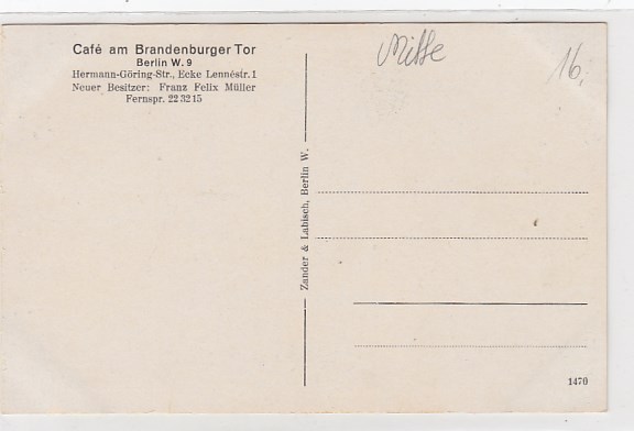 Berlin Mitte Cafe am Brandenburger Tor Hermann-Göring-Straße ca 1935