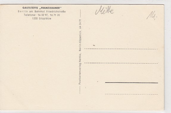 Berlin Mitte Gaststätte Franziskaner Friedrichstraße ca 1930