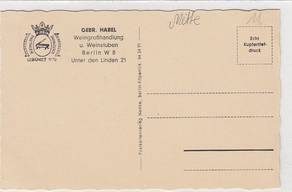 Berlin Mitte Unter den Linden Weinhandlung Habel ca 1930