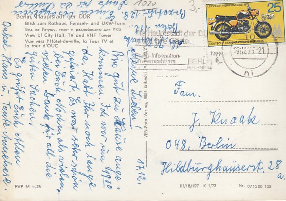 Berlin Mitte Fernsehturm Karl-Marx-Allee 1973