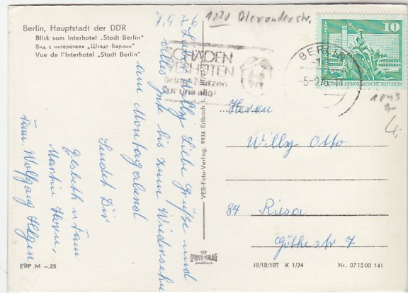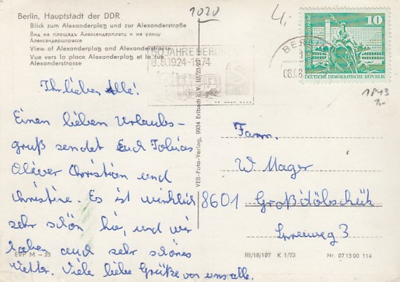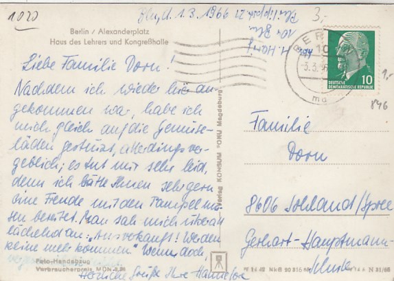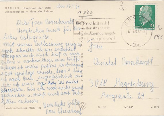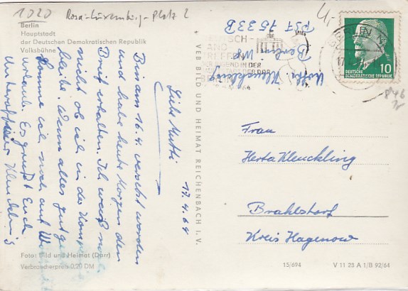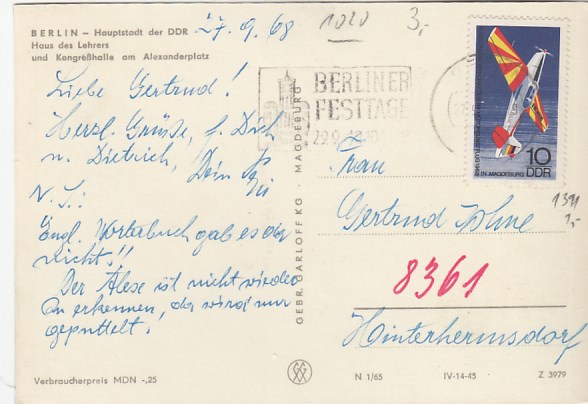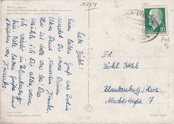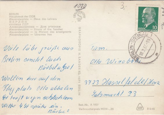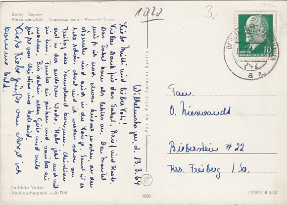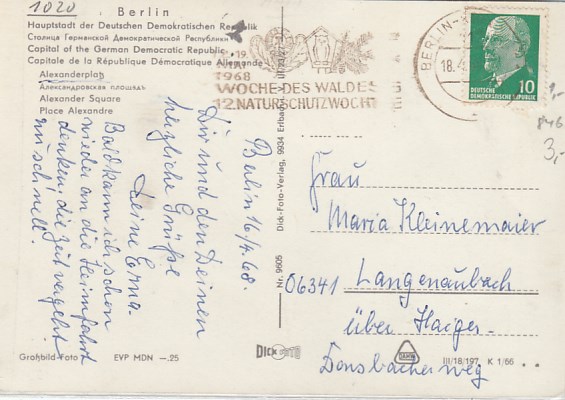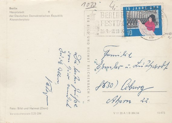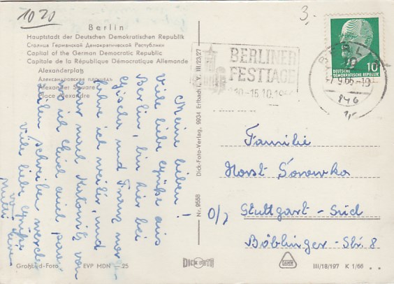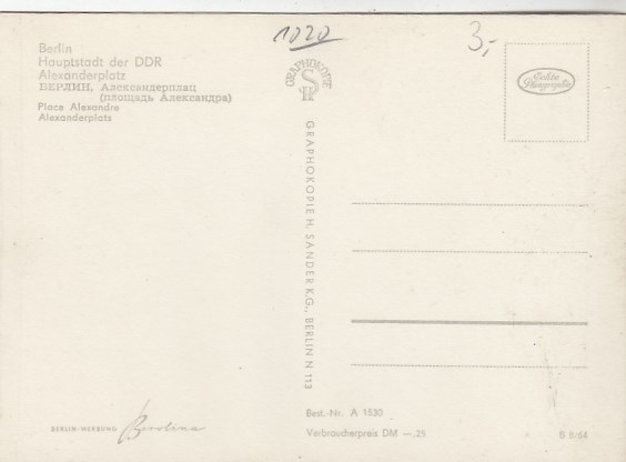 Berlin Mitte Alexanderplatz Sonderstempel 1964