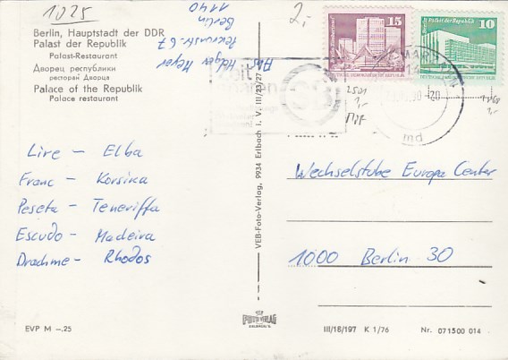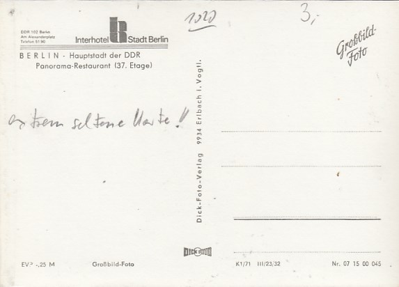 Berlin Mitte Interhotel Panorama Restaurant 1971