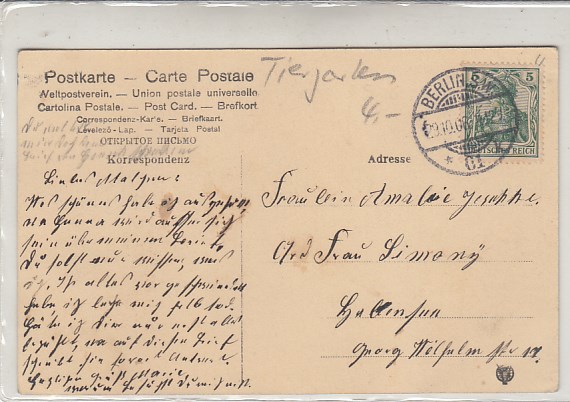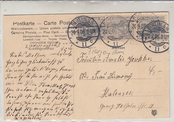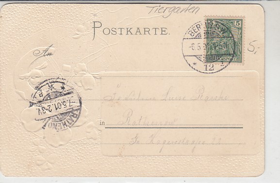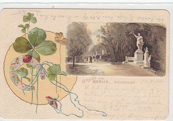 Berlin Tiergarten Sieges-Allee Kleeblatt Prägekarte 1904