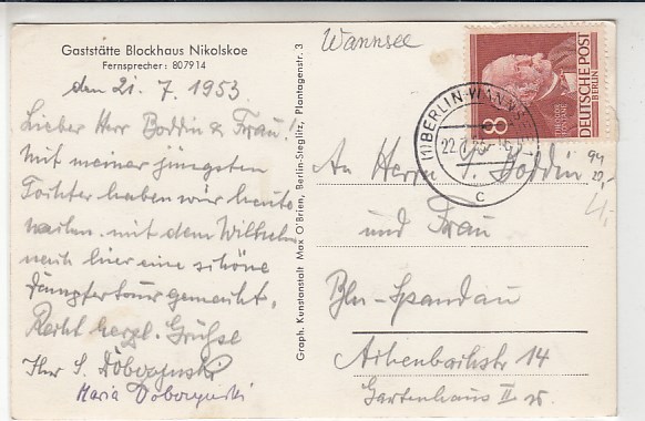 Berlin Wannsee Gaststätte Blockhaus Nikolskoe 1953