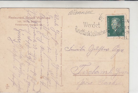 Berlin Wannsee Restaurant Schloß 1931