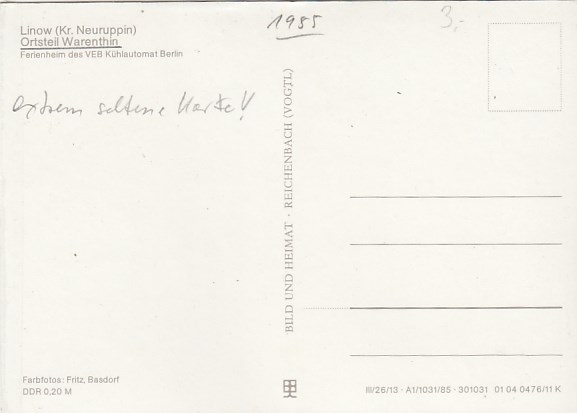 Linow OT Warenthin Ferienheim VEB Kühlautomaten Berlin 1985