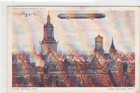 Stuttgart Zeppelin Luftschiff Postkarte Werbung Gebrüder Stollwerck Berlin - Köln