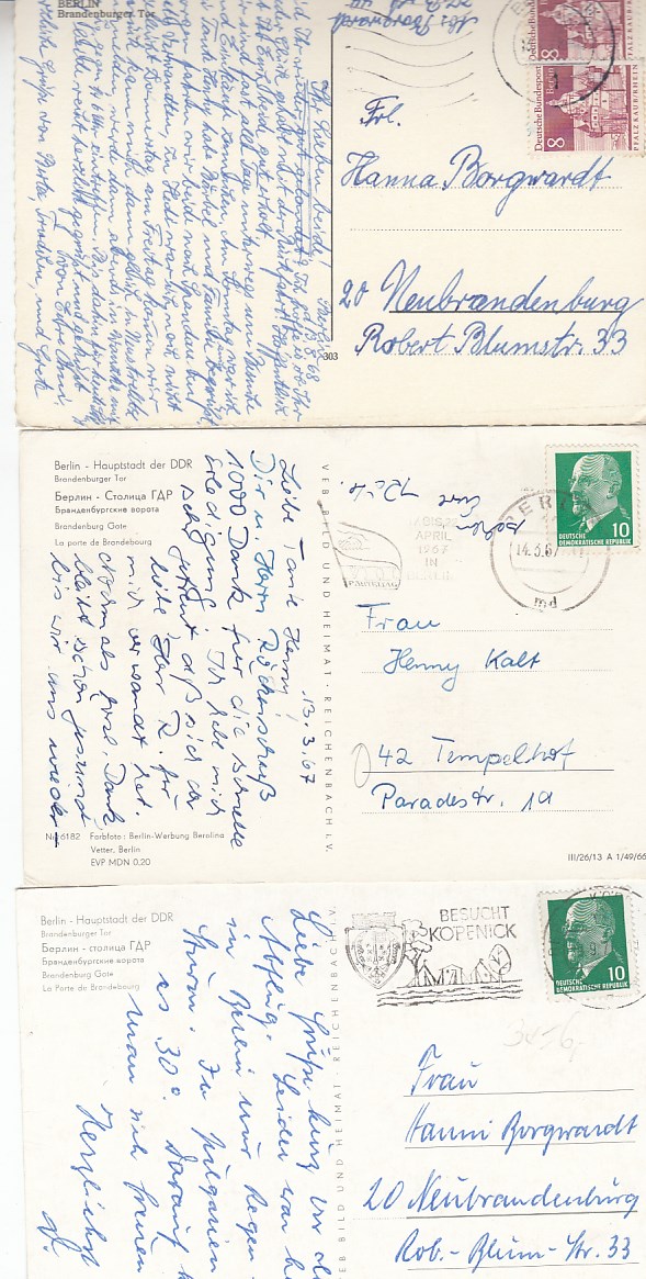 Berlin Mitte 3x Mauerkarte Grenze Brandenburger Tor ca 1970